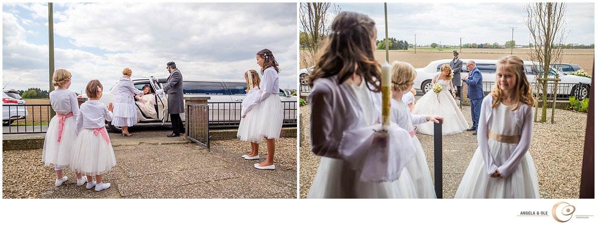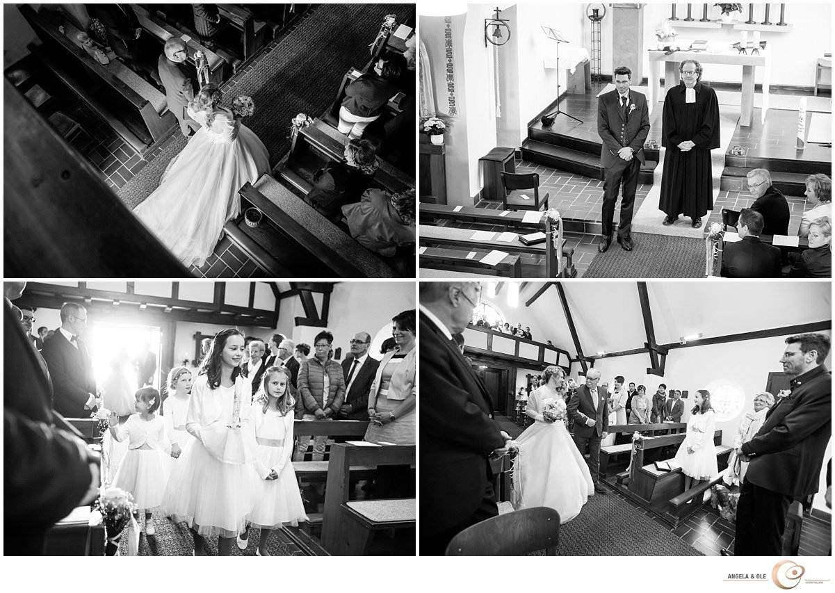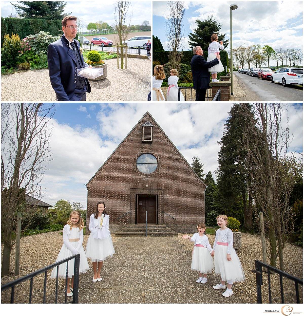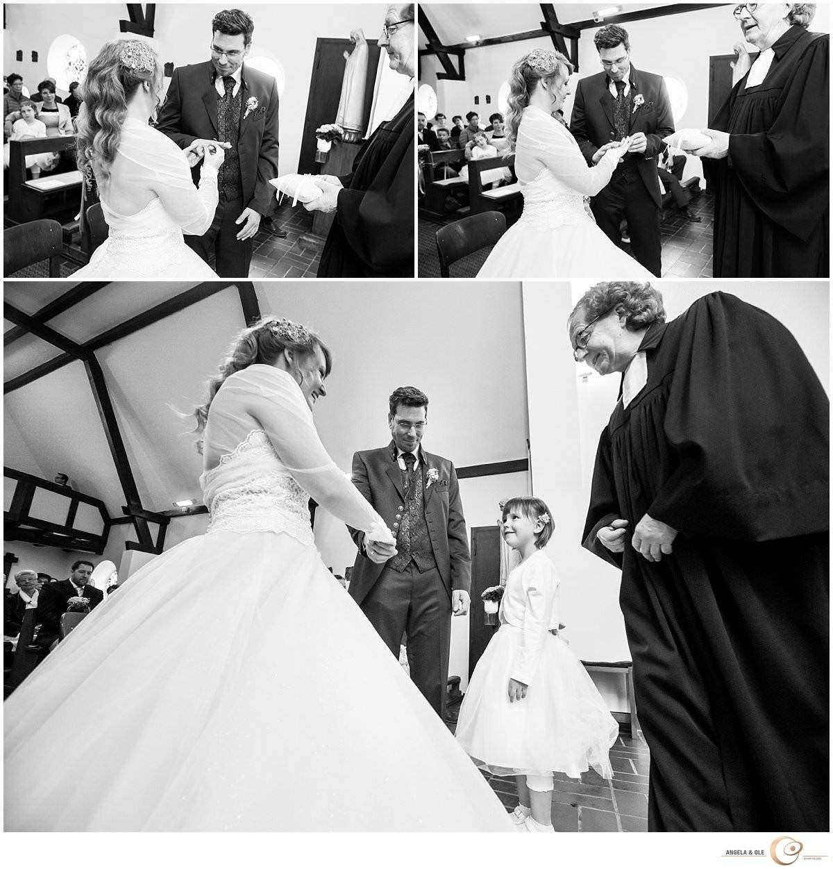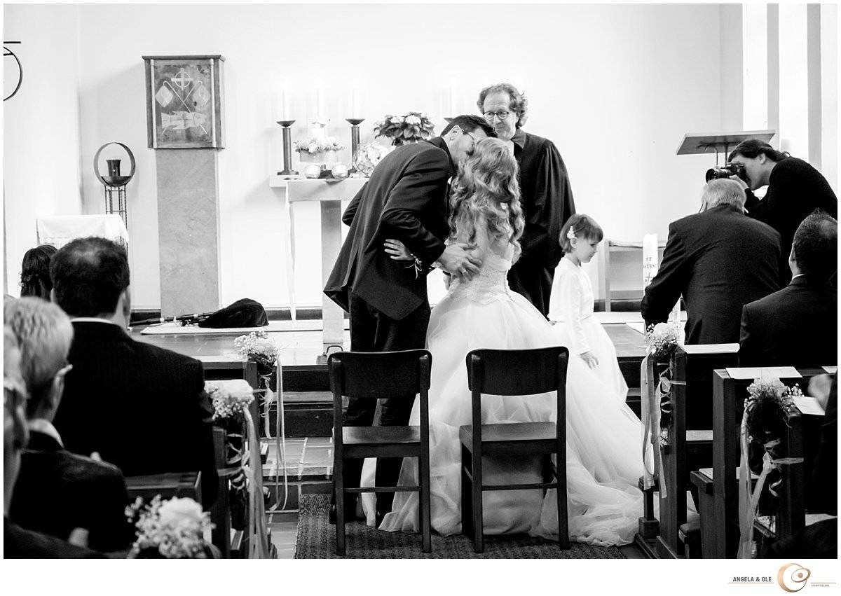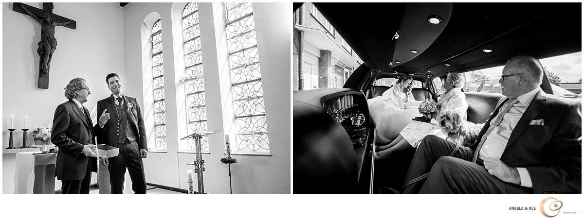 Als Überraschung haben die Eltern eine Limousine vorfahren lassen, mit der Saskia zur Kirche fahren durfte. Hier wartete schon ihr nervöser Bräutigam Markus mit seiner Tochter Melinda. In die sehr emotionale Trauung wurde auch sie mit eingebunden. Nach der Kirche folgte eine Limousinenfahrt nach Moers zum Feltgenhof. Bei schönstem Sonnenschein haben die beiden mit ihren Gästen hier gefeiert. Als besondere Überraschung trat abends die Showdance Gruppe der Viktoria Tanzgarde aus Goch auf. Ein ganz besonderer Moment!