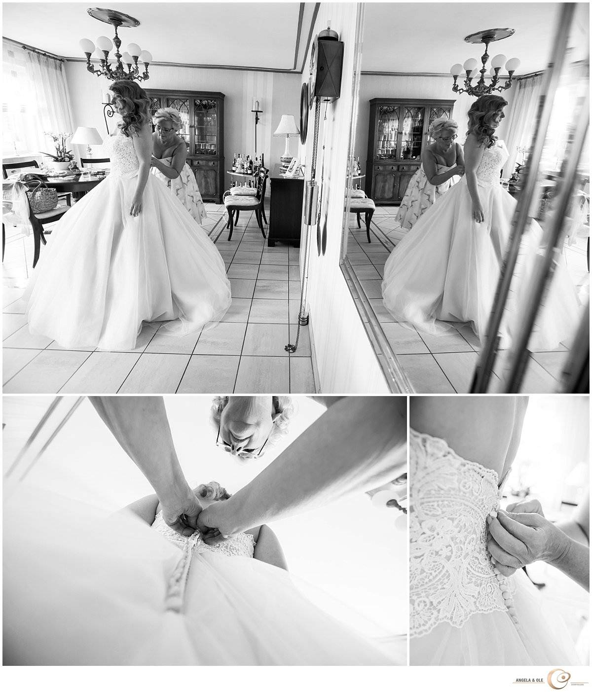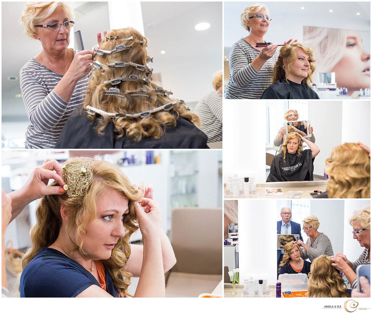 Wer in und um Goch Hochzeit feiert, kennt das renommierte, in dritter Generation geführte Friseur- und Kosmetikstudio von Saskia Hendrix. Als nun Saskias eigene Hochzeit anstand, war es keine Frage, daß die Brautmutter höchstpersönlich die Brautfrisur ihrer Tochter stecken würde! Saskias Mitarbeiterinnen haben es sich nicht nehmen lassen, ihrer Chefin das Brautmakeup zu machen.