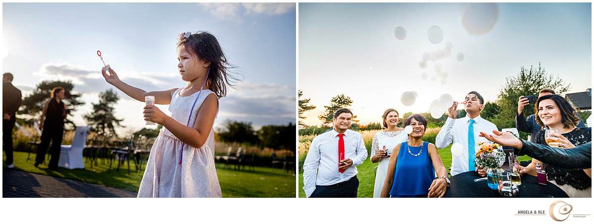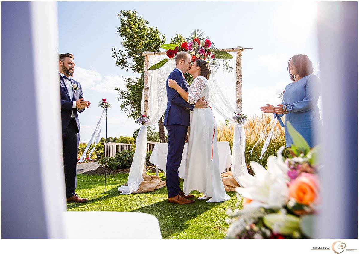 Bei einer sehr emotionalen freien Trauung unter einem strahlenden Sommersonnenhimmel, haben sich Hellen und Bartholomäus ihr ganz persönliches Versprechen gegeben. Die Kulisse des Golfplatzes in Fliesteden lud zum easy Chill ’n Grill Abend ein. Die anschliessende Party ging bis in die frühen Morgenstunden.