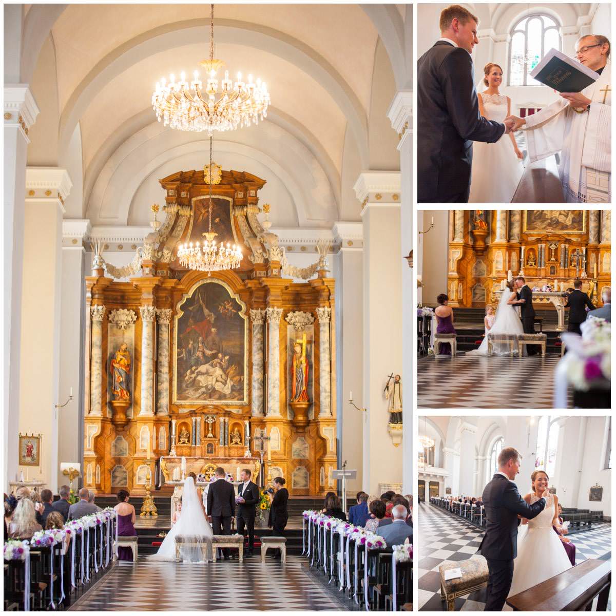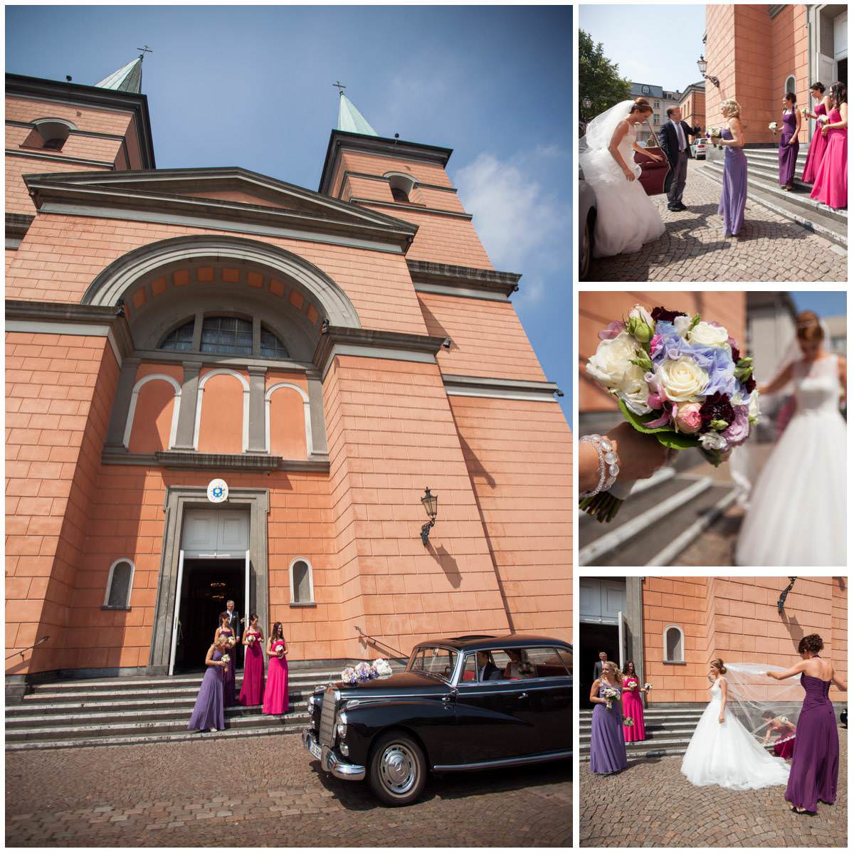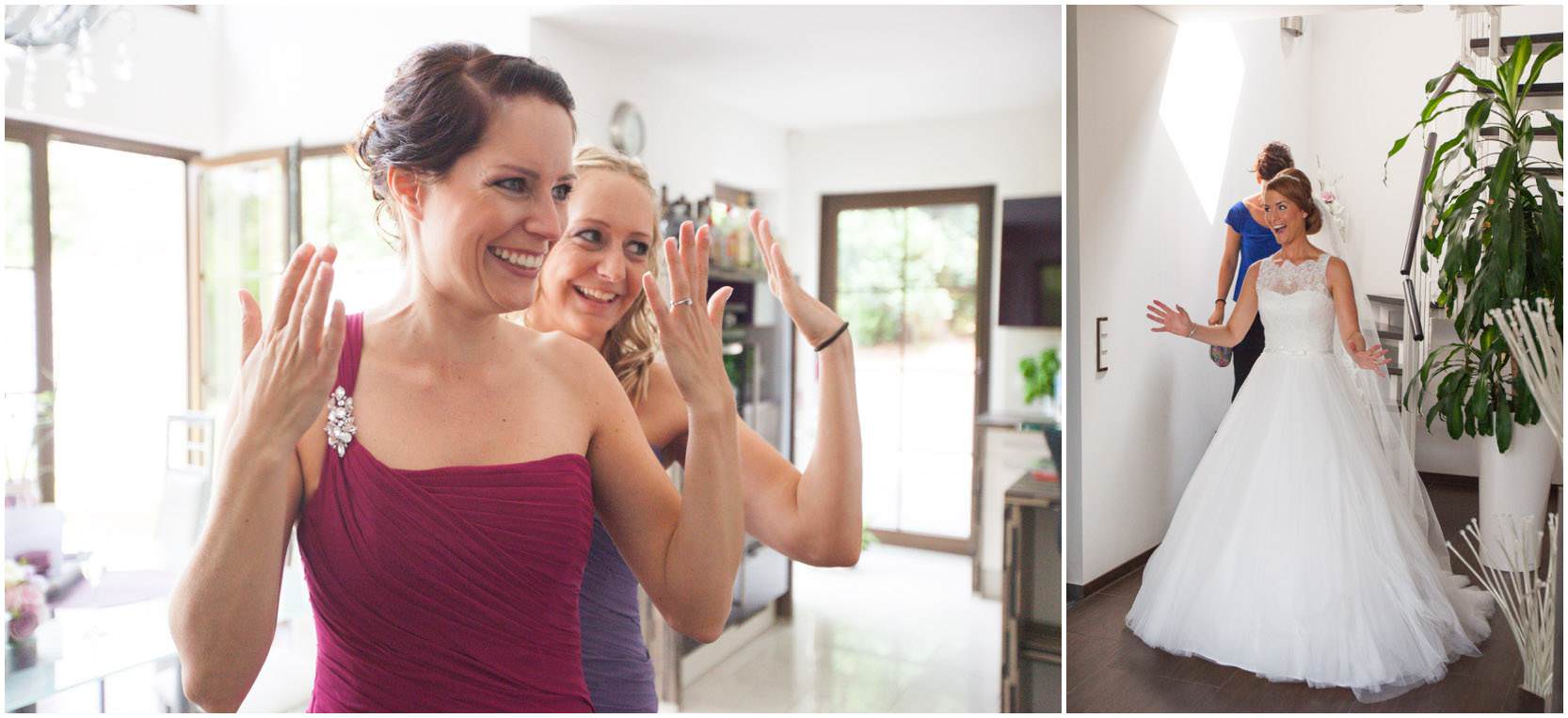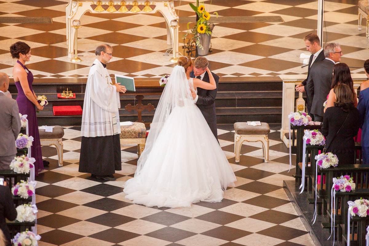 Bei der Ankleidung hatte Nina ihr liebsten Freundinnen dabei, die sie den Tag über als ihre Brautjungfern begleiten würden. Bei einer sehr feierlichen Trauung gaben sich die Beiden ihr Eheversprechen. Der Kirchplatz war mit Sonne gesegnet an diesem Tag und so bot der Sektempfang für alle Gäste eine sommerliche Erfrischung. Die Hochzeitsfeier fand dann auf Gut Höhne statt. Die Tischdekoration, wie auch der Brautstrauss waren in zartes Lila getaucht. Hier liessen es sich alle bis in die Nacht gut gehen und feierten bis zum Morgen!